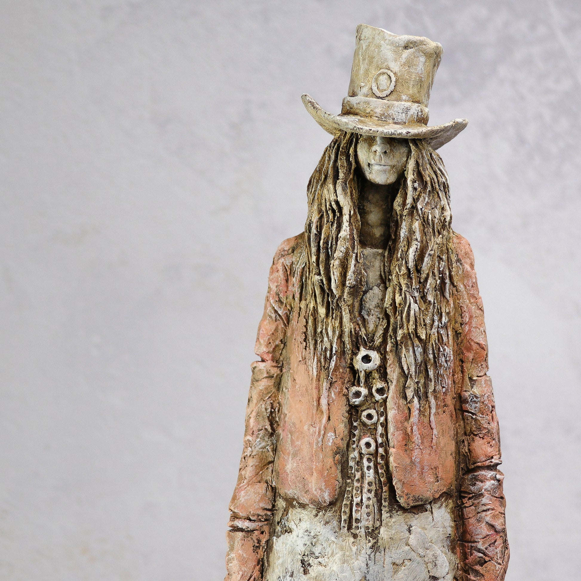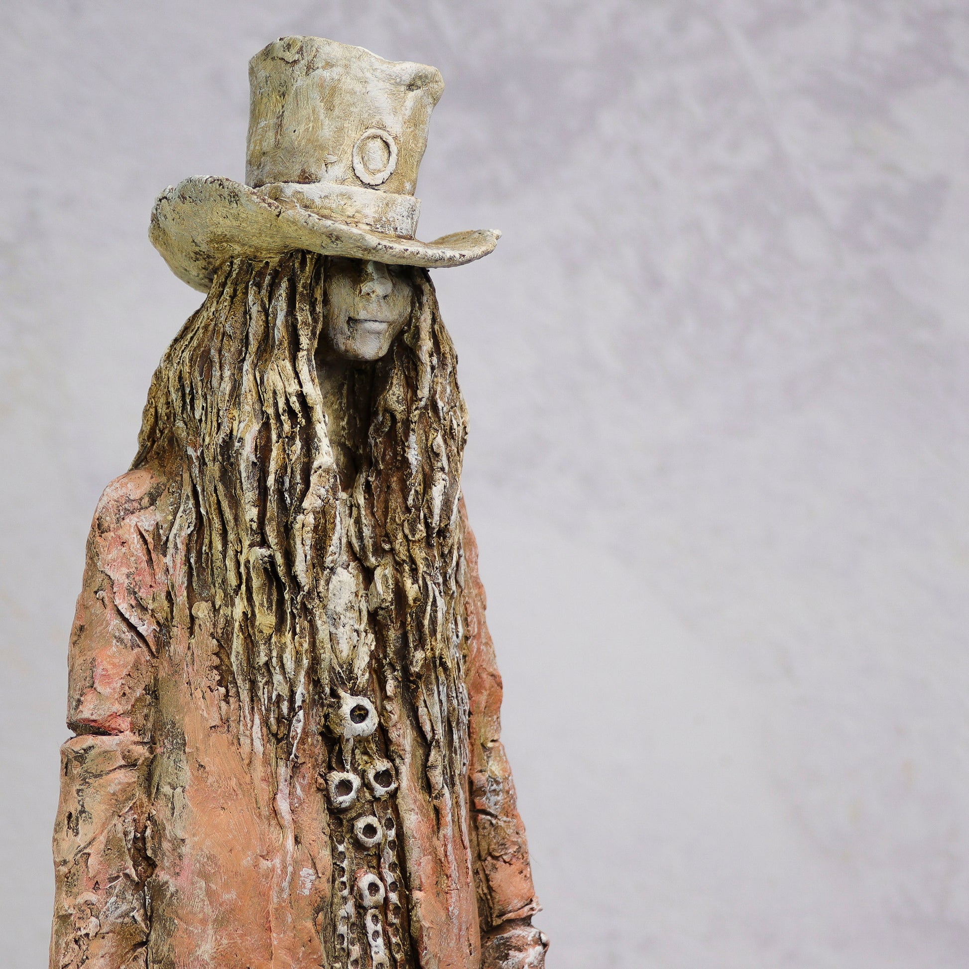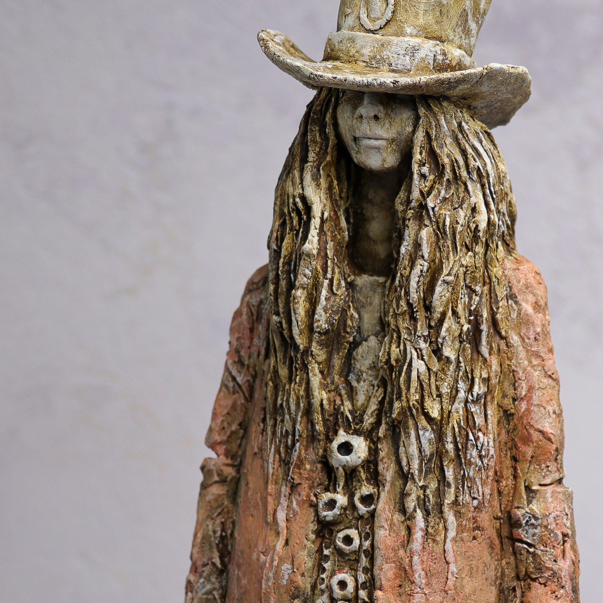 Rzeźba ceramiczna wykonana z gliny szamotowej wypalona w temperaturze 1150 st.C. Sygnowana.