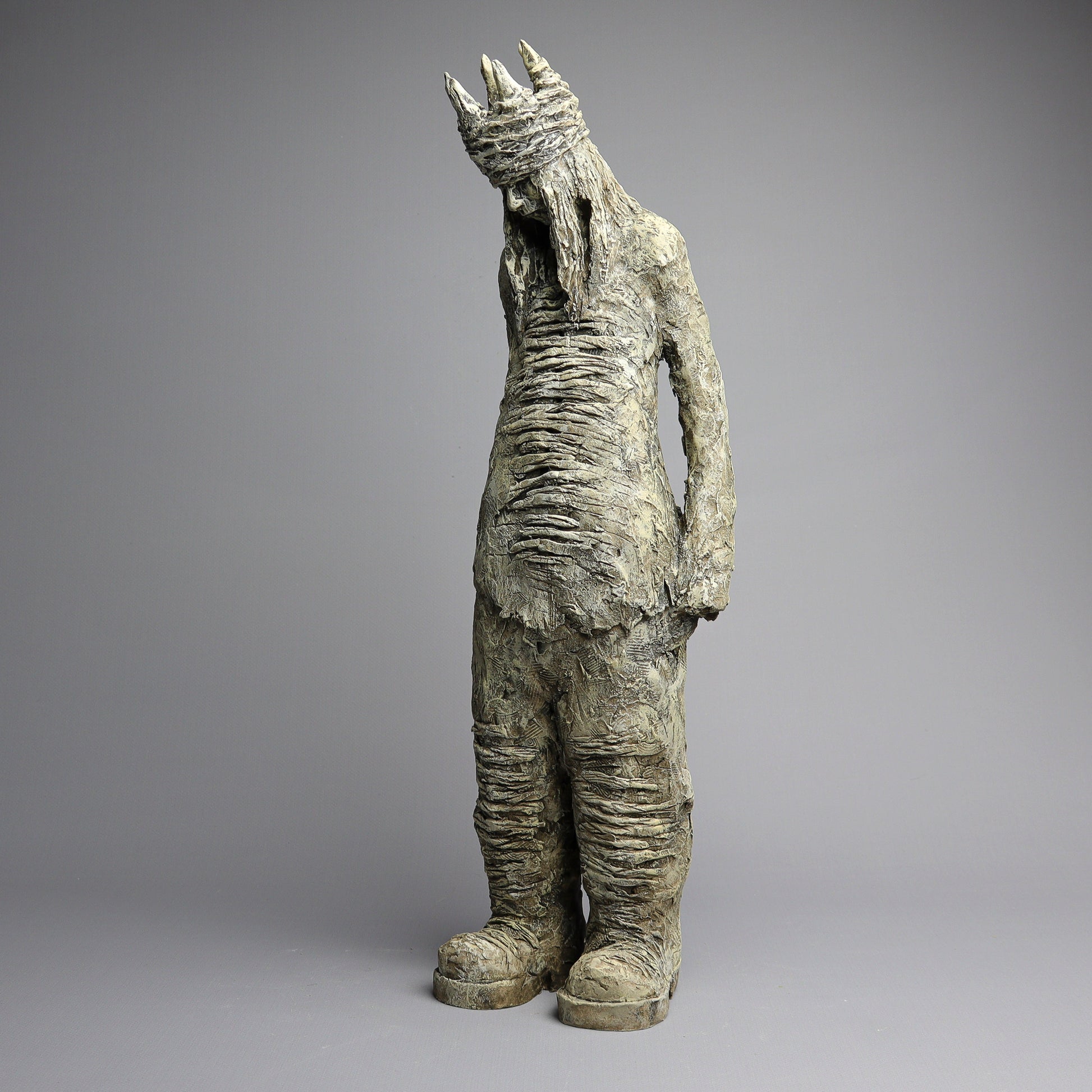 Rzeźba ceramiczna wykonana z gliny szamotowej wypalona w temperaturze 1150 st.C. Sygnowana.