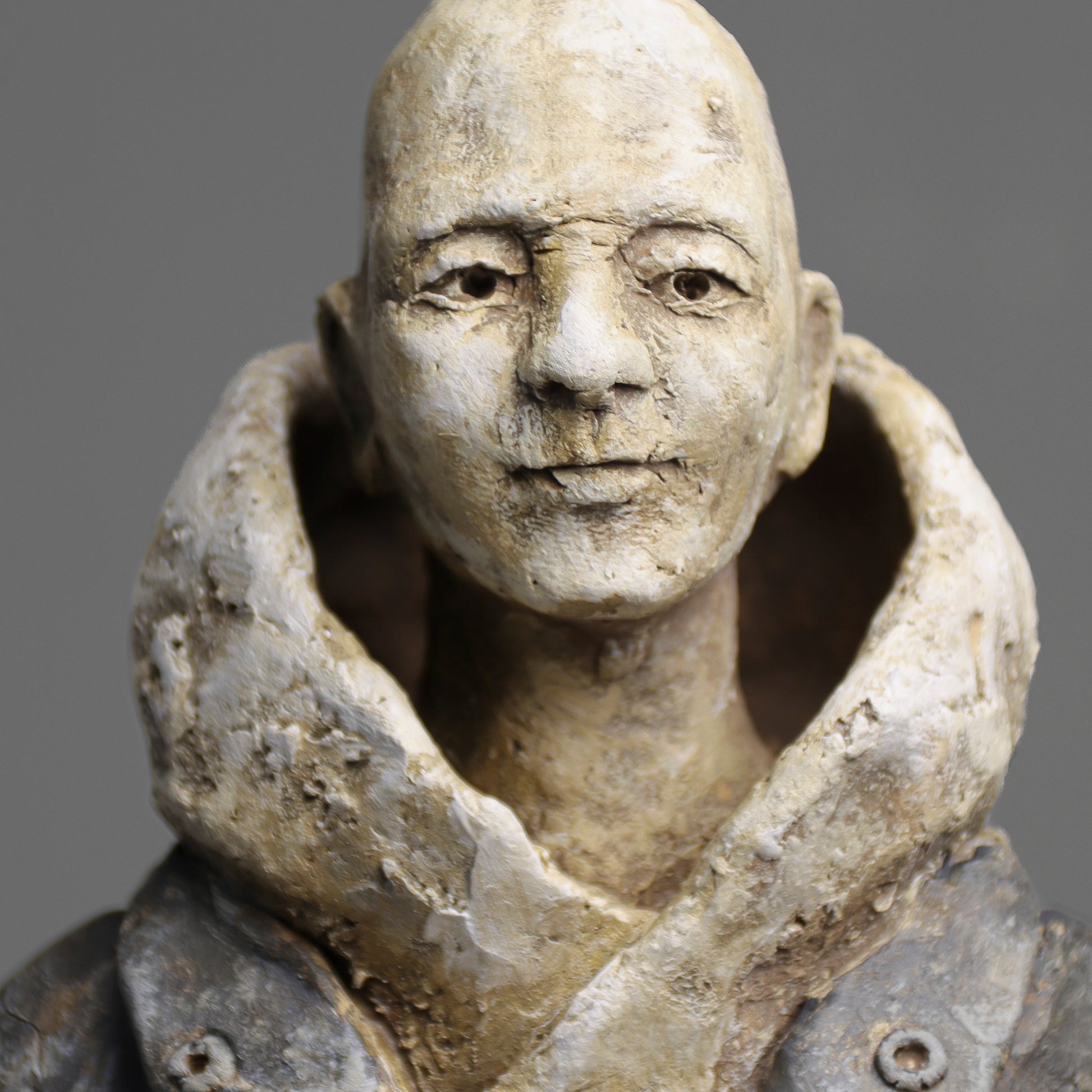 Rzeźba ceramiczna wykonana z gliny szamotowej wypalona w temperaturze 1150 st.C. Sygnowana.