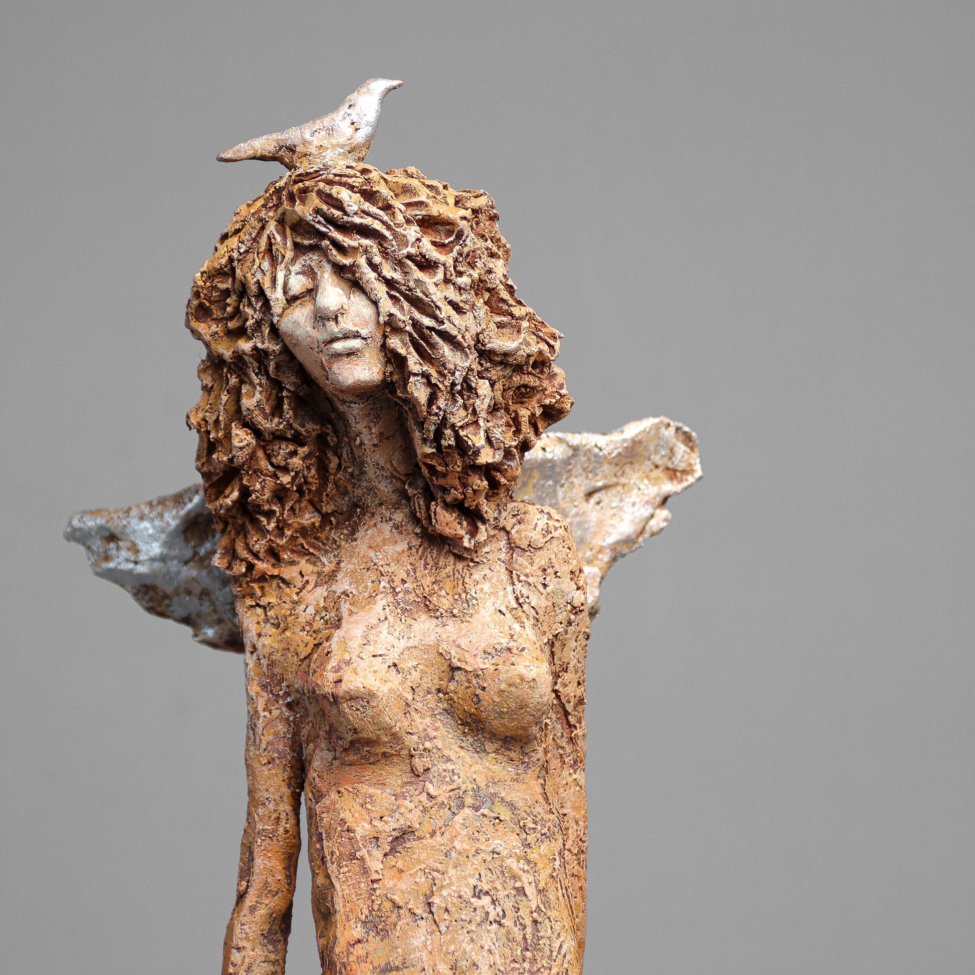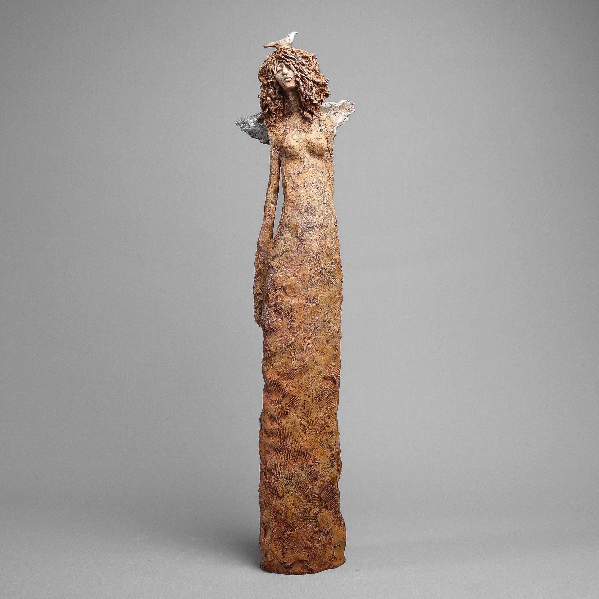 Rzeźba ceramiczna wykonana z gliny szamotowej wypalona w temperaturze 1150 st.C. Sygnowana.