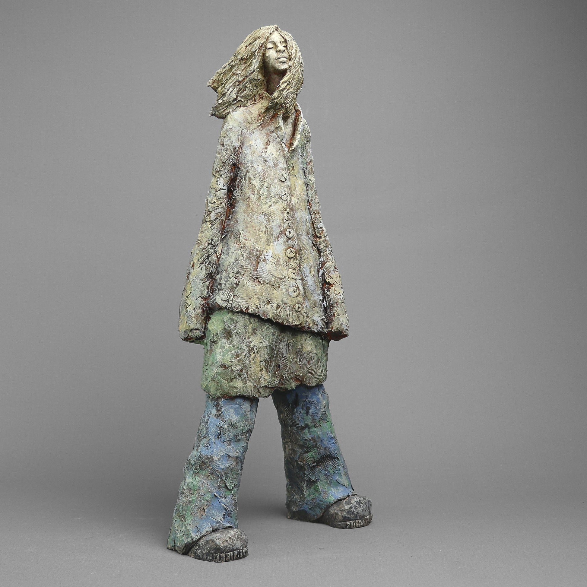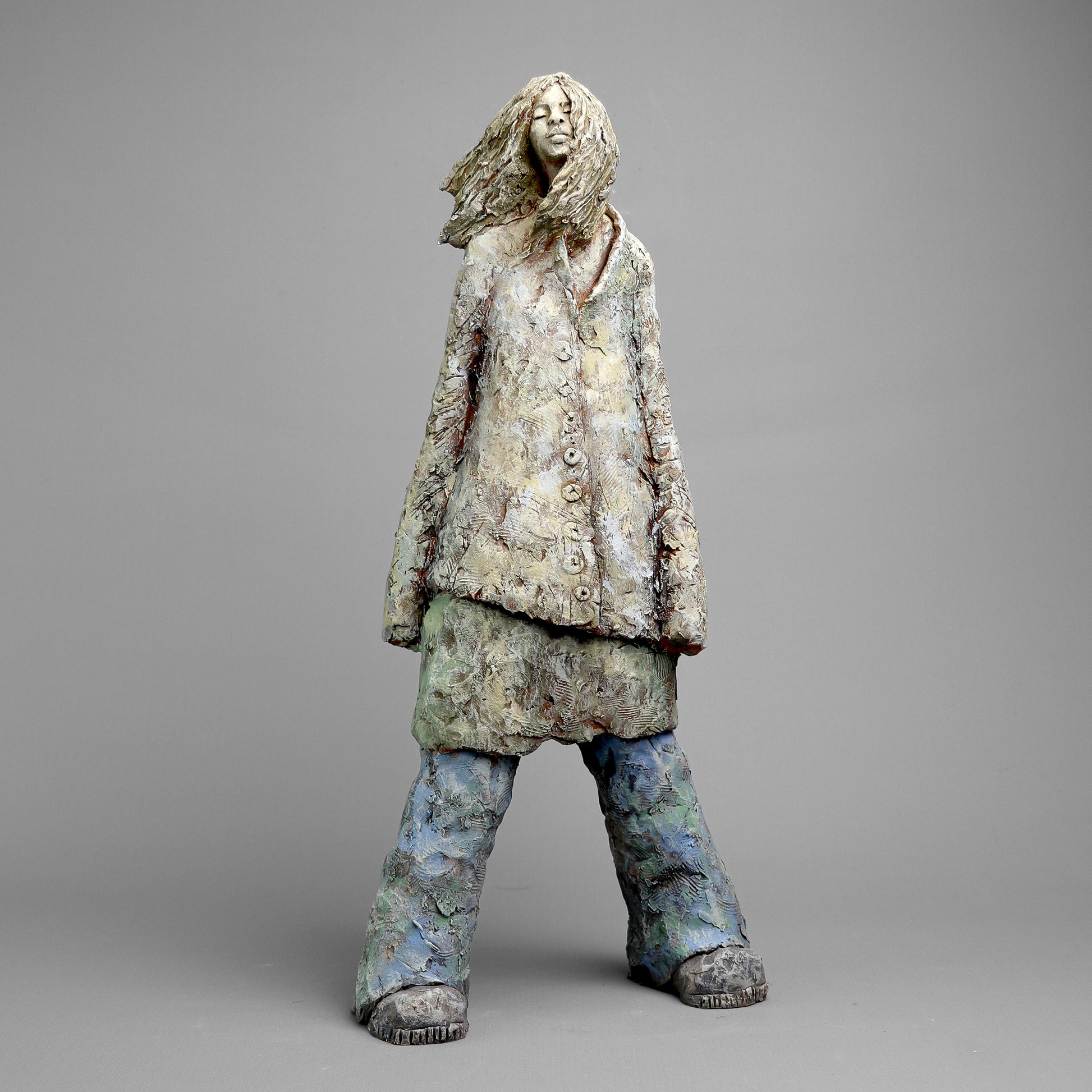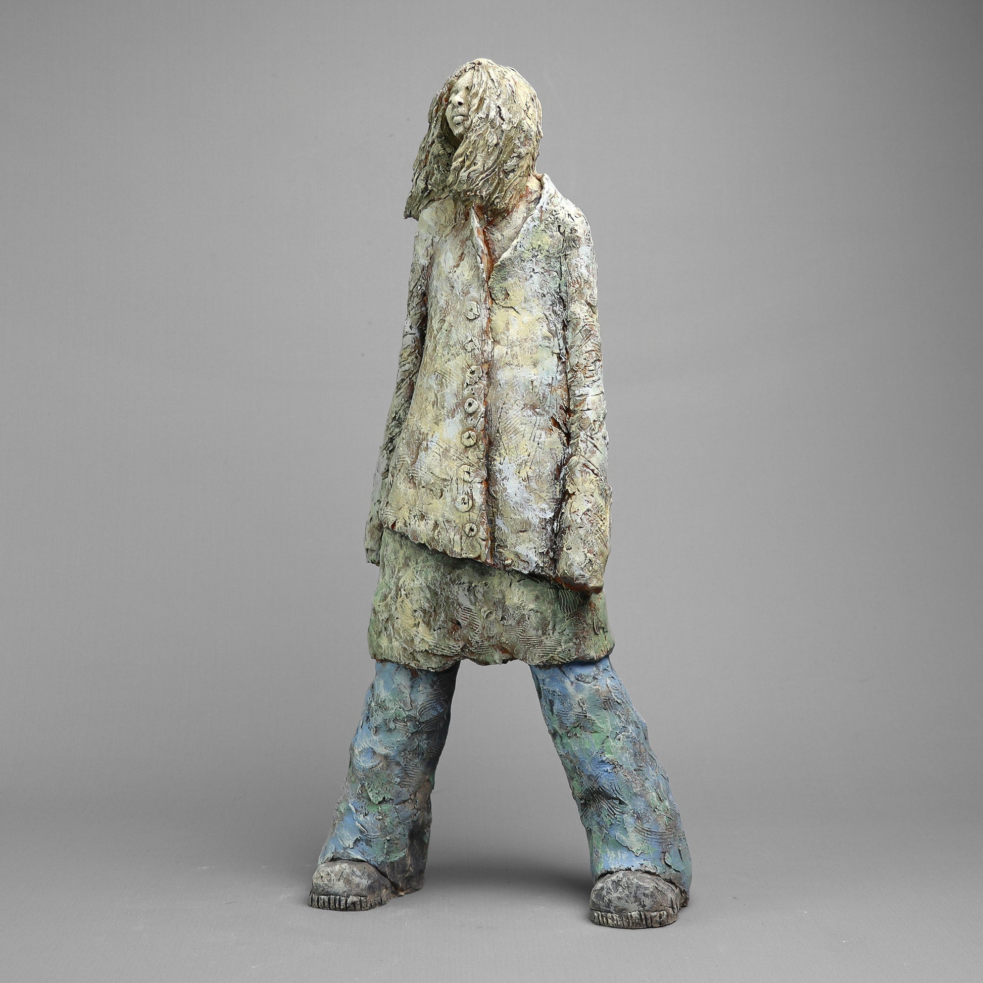 Rzeźba ceramiczna wykonana z gliny szamotowej wypalona w temperaturze 1150 st.C. Sygnowana.