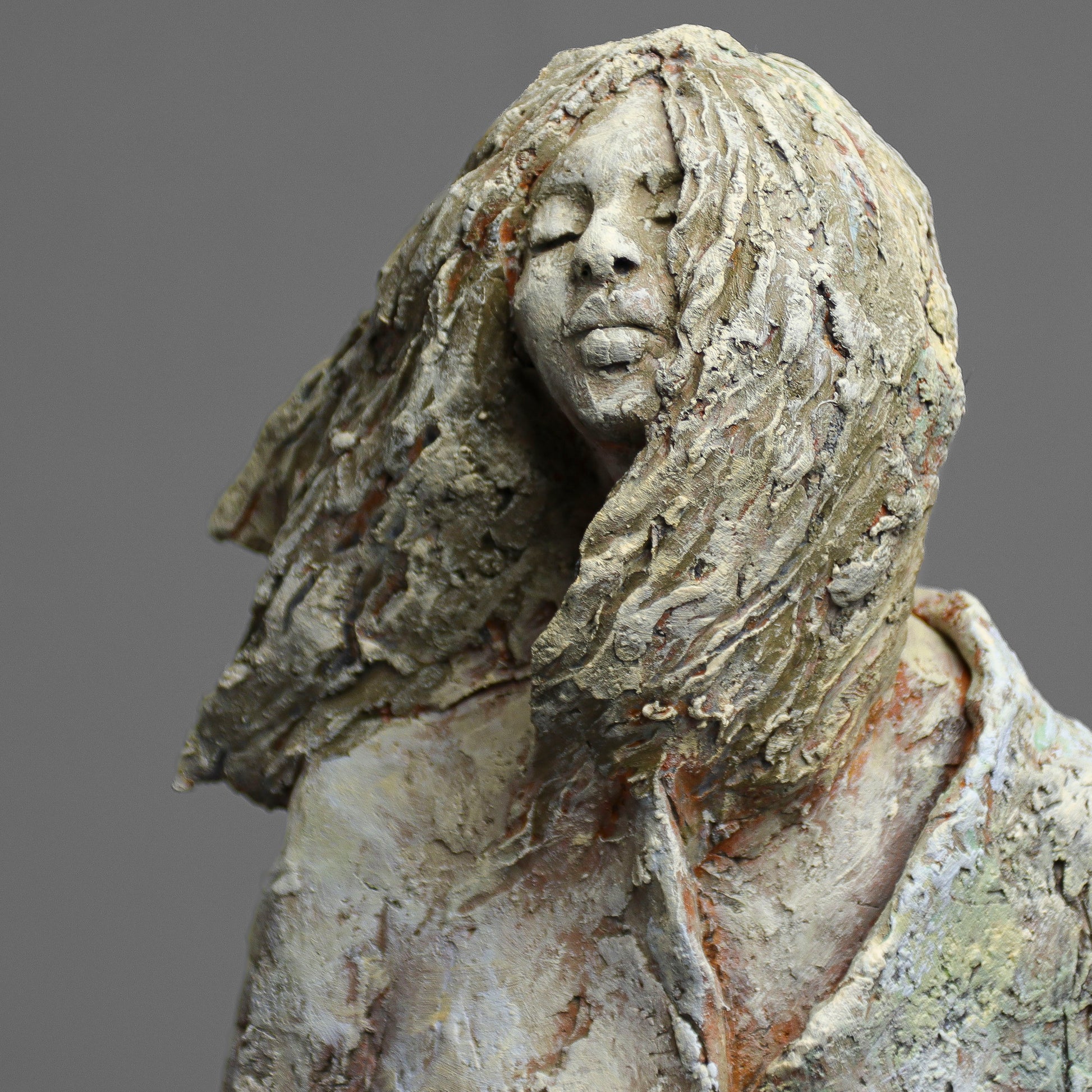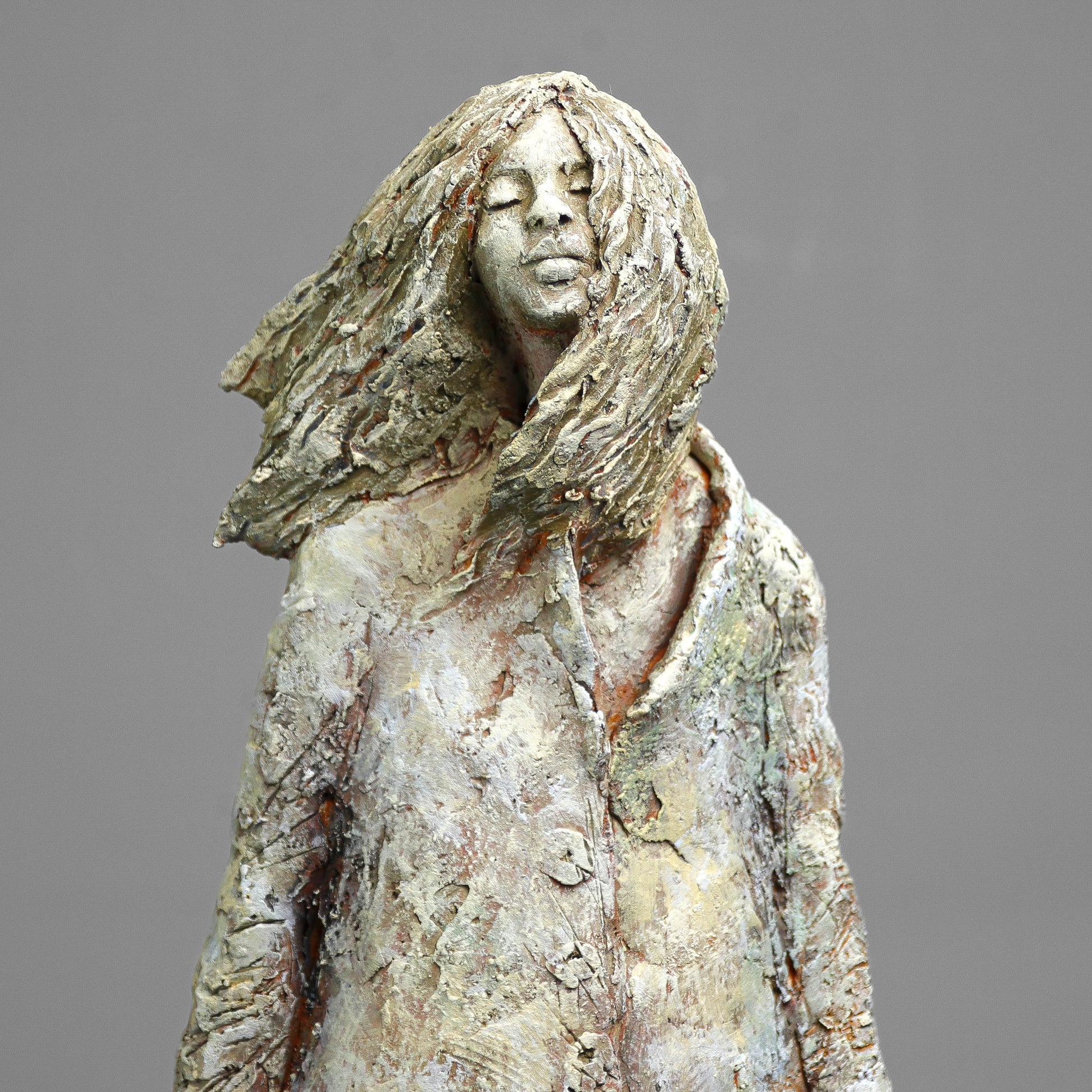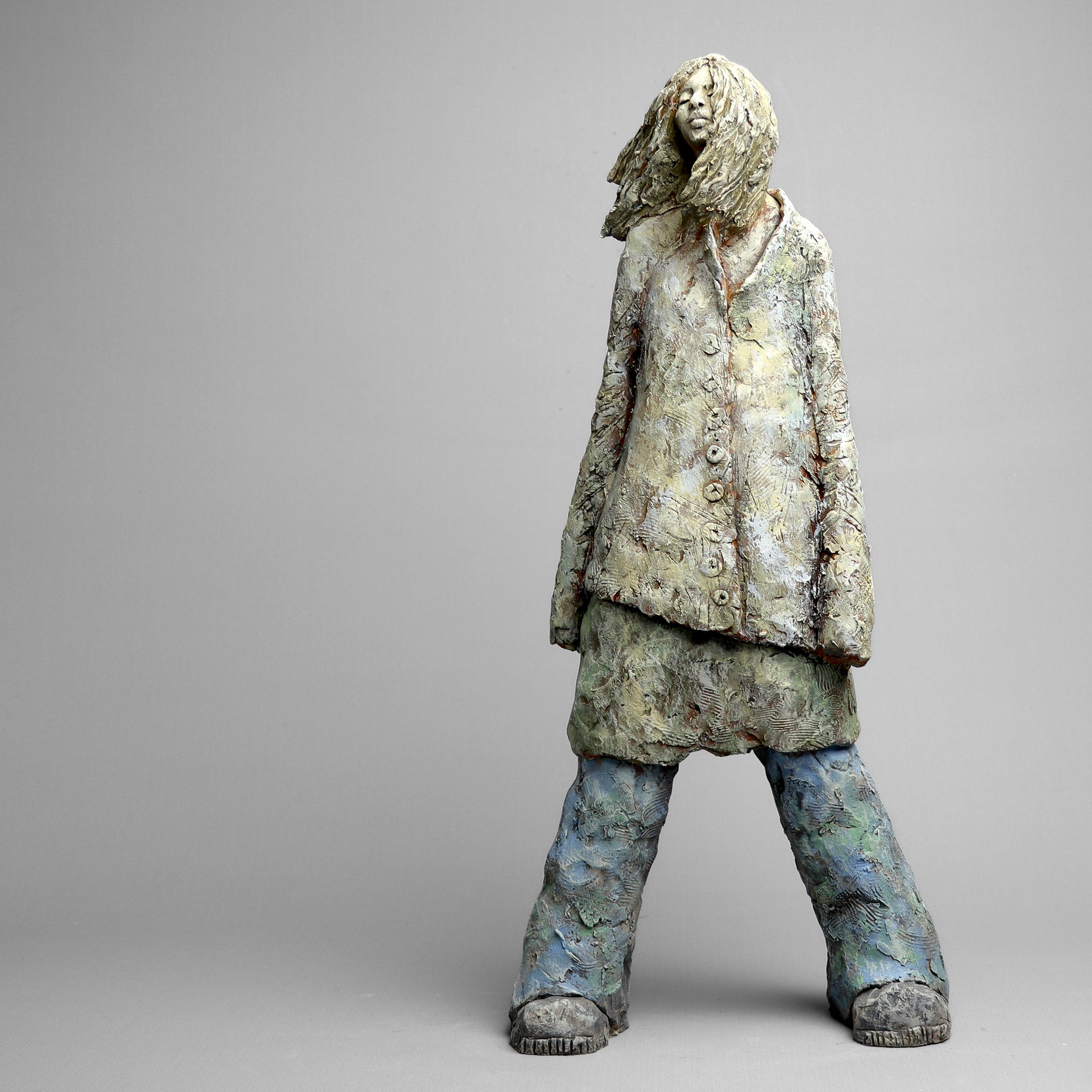 Rzeźba ceramiczna wykonana z gliny szamotowej wypalona w temperaturze 1150 st.C. Sygnowana.